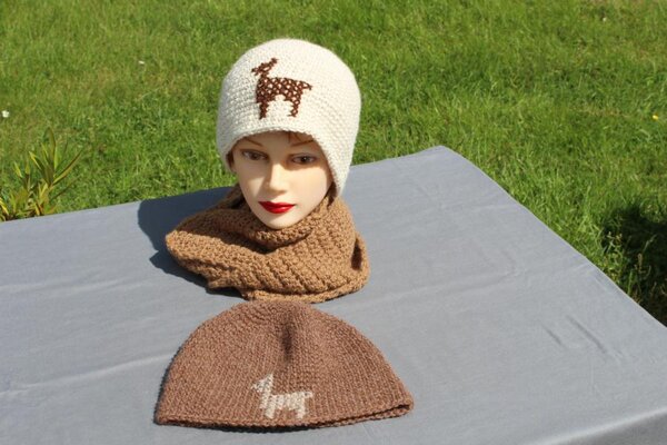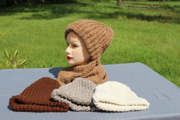 Avec notre laine d’alpaga, on fait des créations en petites séries et des pièces uniques. Dans notre atelier, vous trouverez des bonnets, des écharpes, des snoods, des boucles d’oreilles et plus, tricotés, crochetés ou feutrés en laine d’alpaga.